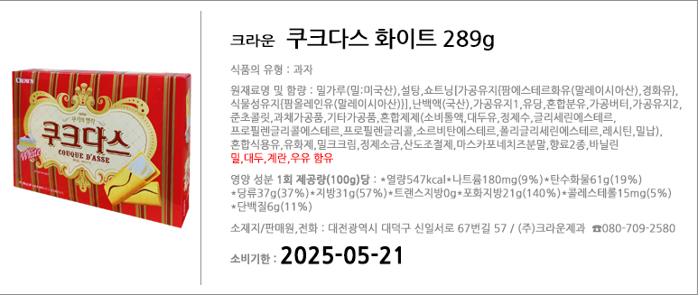 크라운 쿠크다스 화이트 289g 유통기한 임박